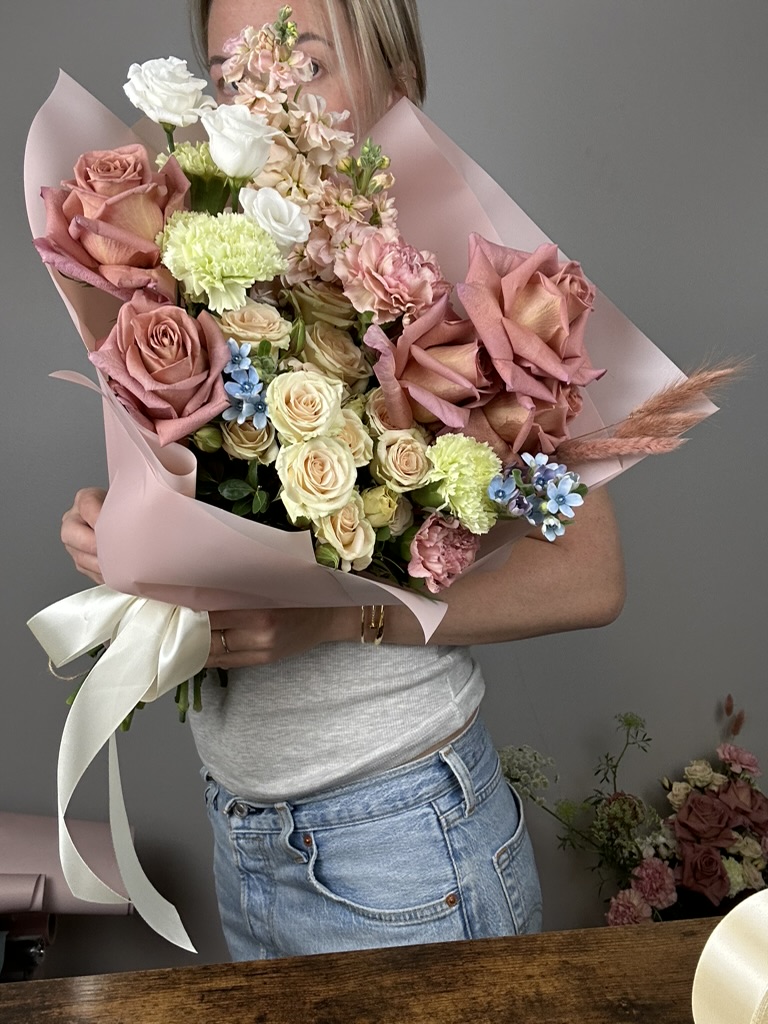 Premium Roses, spray roses, carnations and stock.